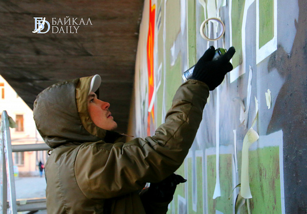 С 19 по 23 октября в центре Улан-Удэ по улице Куйбышева уличные художники рисуют граффити на опорной стенке моста напротив Художественного музея имени Сампилова.