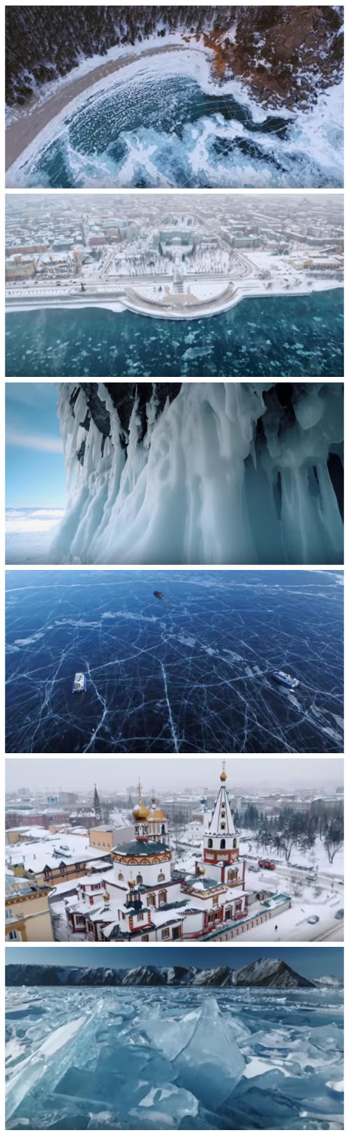 Также, в 5-минутном ролике автор успел показать не только искрящийся и трескающийся голубой лёд самого большого пресноводного озера, но и продемонстрировал катание на воздушной подушке – хивусах, которая буквально летит над водой и льдом. Автор исследовал глубокие пещеры и высокие заснеженные горы острова Ольхон и погрузил зрителей в сказочную красоту Иркутска.