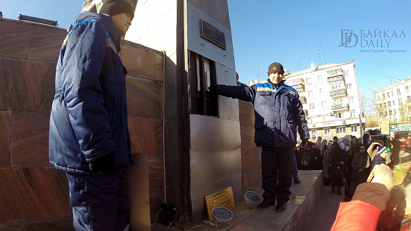 Сперва на митинге зачитали текст послания из капсулы времени, заложенной 50 лет назад. Как сообщал «Байкал-Daily», добраться до самой капсулы рабочие не смогли из-за большого слоя бетона. Однако текст послания сохранился, так что его всё равно зачитали.