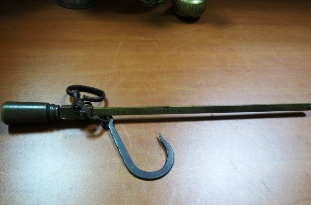Рыночная стоимость изделия – 3067 рублей. Рычаг и ползун весов выполнены из латуни, подвес и крючок – из стали. Согласно маркировочным обозначениям, весы были изготовлены в 1881 году в германском княжестве Reuss, которое просуществовало до 1918 года.