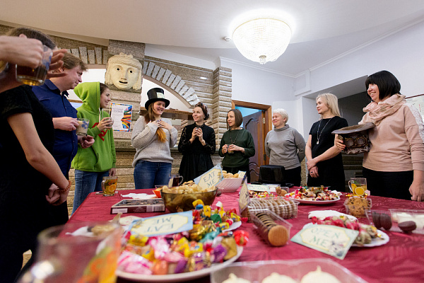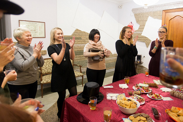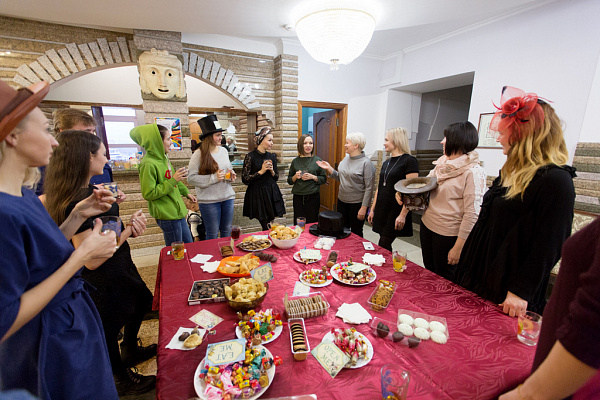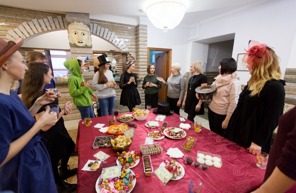 Актрисы и работники театра в фойе Малой сцены накрыли стол и предложили гостям вкусный чай, печенье и разные сладости. Цель мероприятия – собраться вместе и сделать пожертвование на лечение детей, которые борются с раком. «Бестужевцы» и пришедшие в этот день гости не только пили чай, но и играли в театральные игры. Артистки театра продемонстрировали несколько актерских упражнений на внимательность, развитие воображения и др.