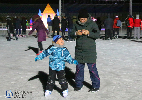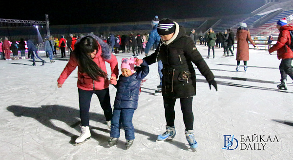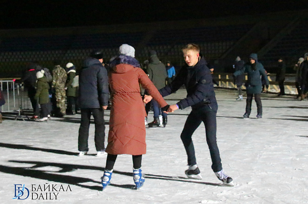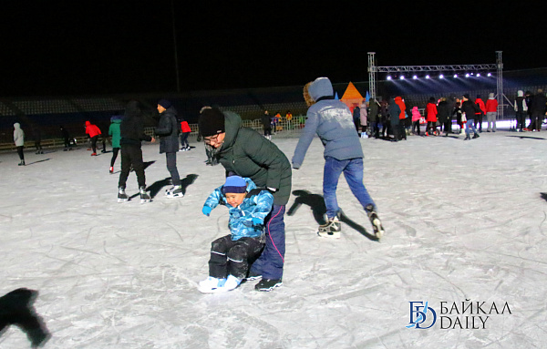 Накануне вечером на Центральном стадионе Бурятии состоялось торжественное открытие самого большого ледового катка в Улан-Удэ.