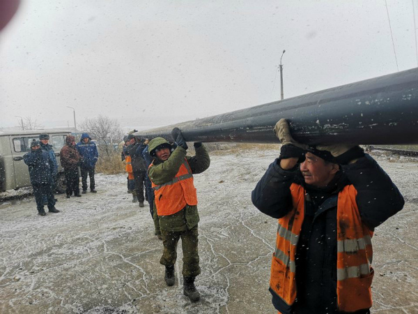 В Улан-Удэ продолжаются работы по устранению крупной коммунальной аварии, оставившей без горячей воды почти 500 домов. Ремонтные работы продолжались всю ночь, за это время было проложено почти 500 метров турбопроводода.