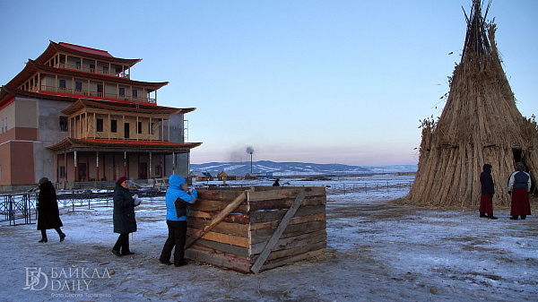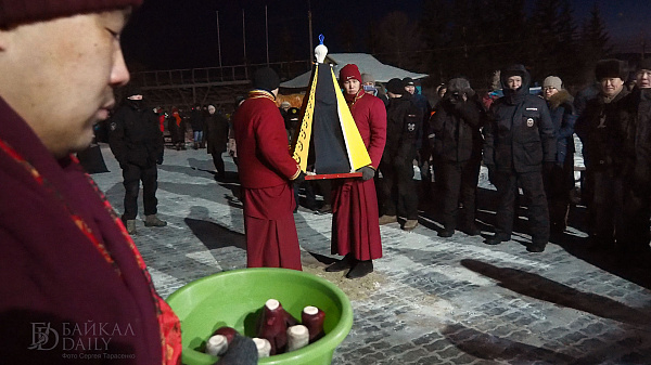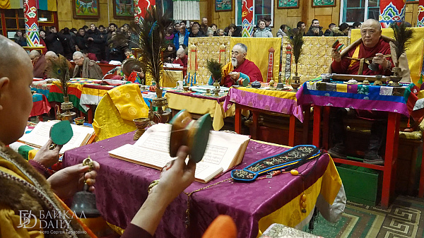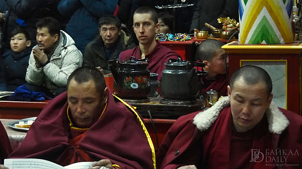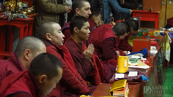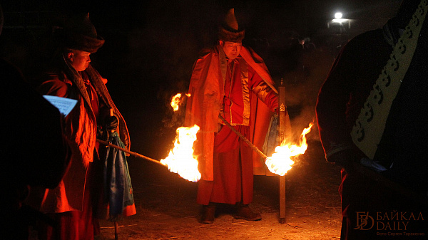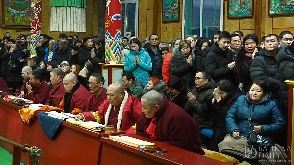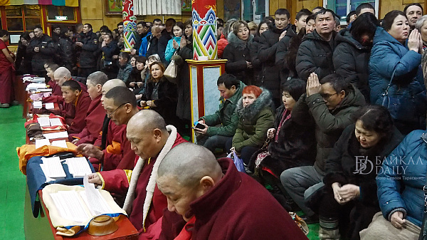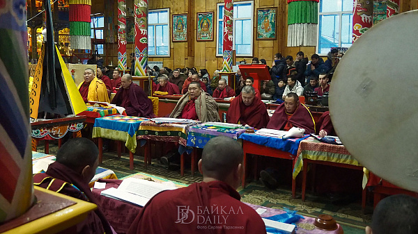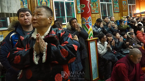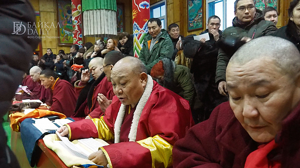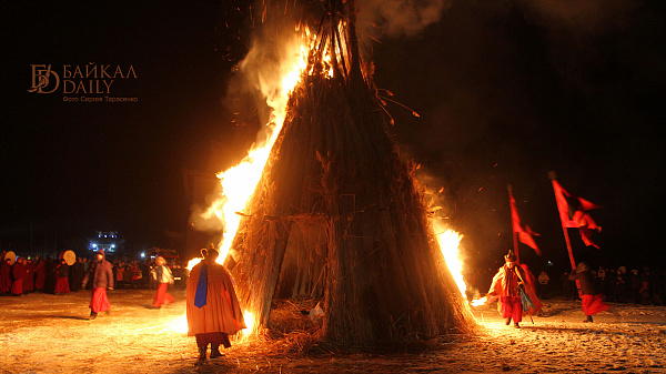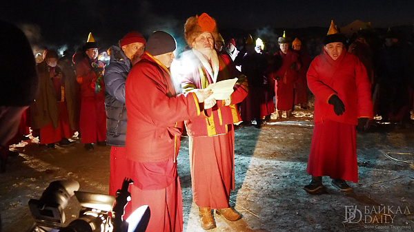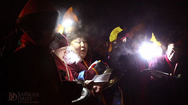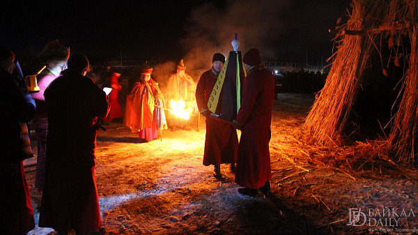 В 17.30 часов ламы начали читать специальный молебен Дугжууба, после чего развели ритуальный костер.
