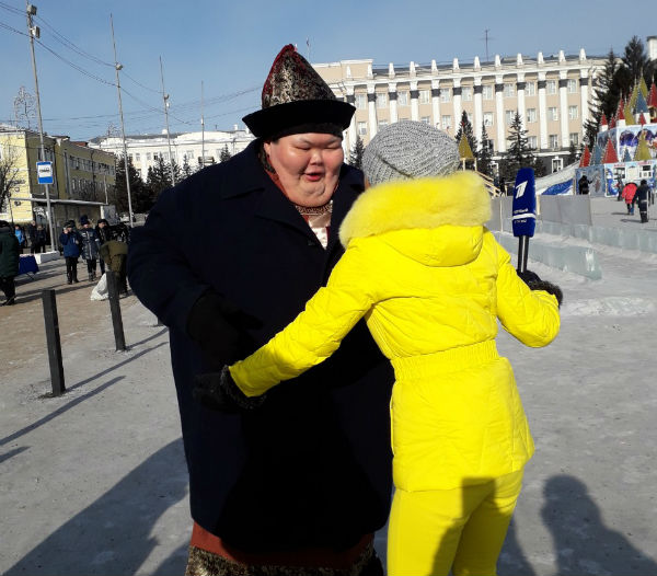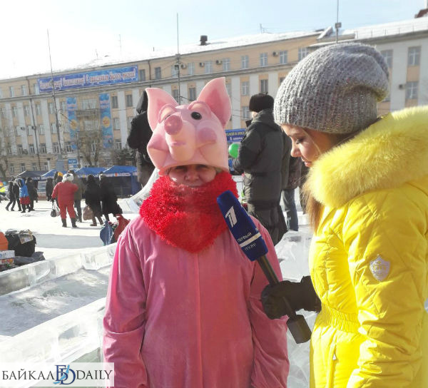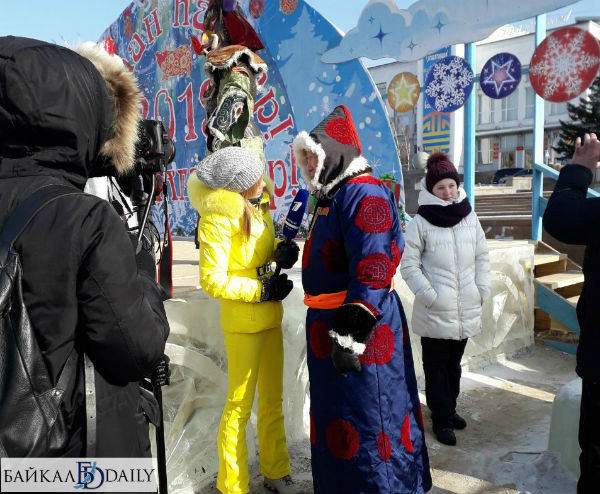 Известная телеведущая Алла Михеева взяла интервью у главы Бурятии Алексея Цыденова, именитого сумоиста Анатолия Михаханова, иностранных Дедов Морозов, у проходящей мимо «свиньи» - артистки в костюме символа этого года по лунному календарю.