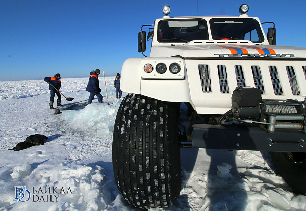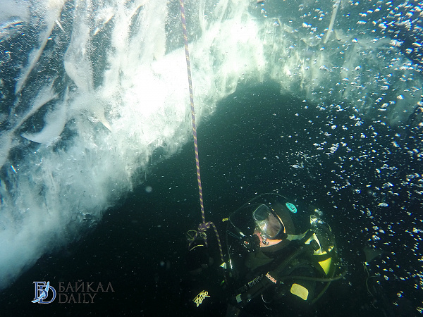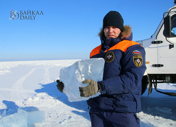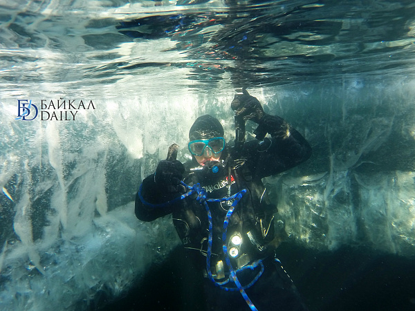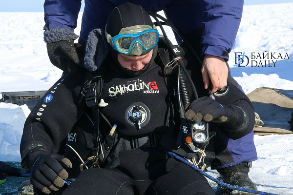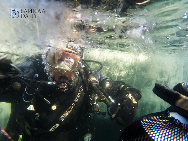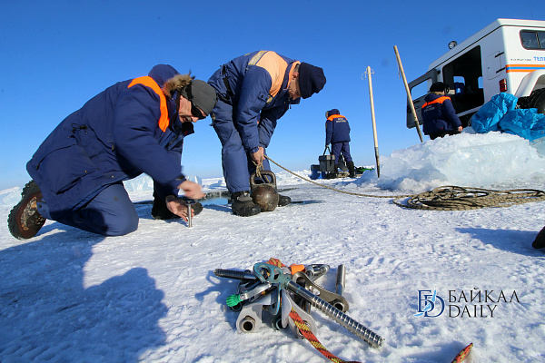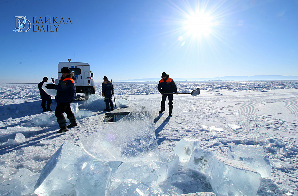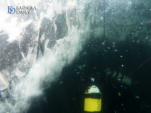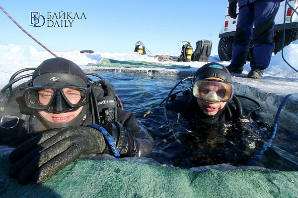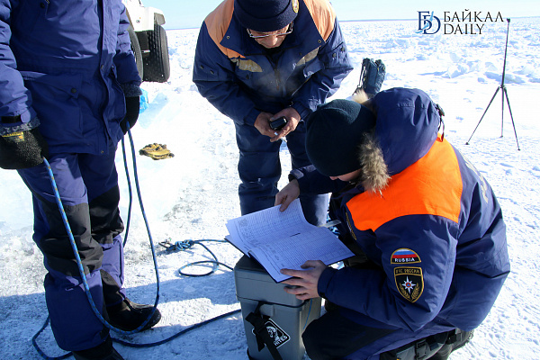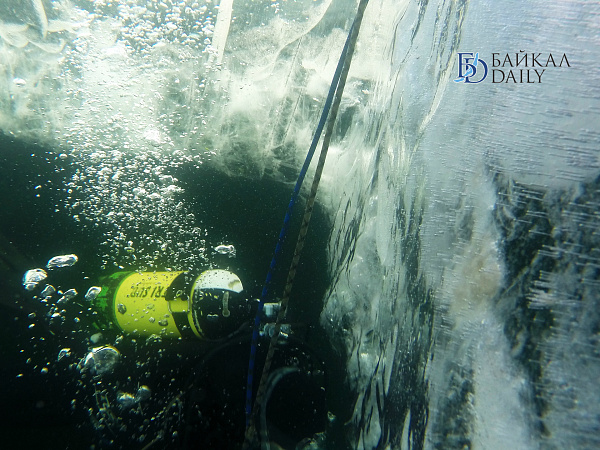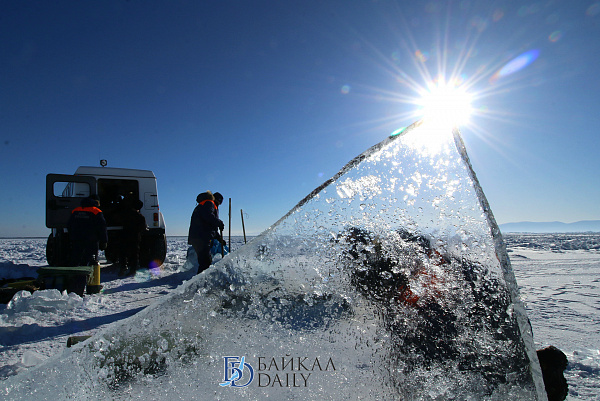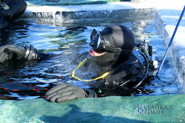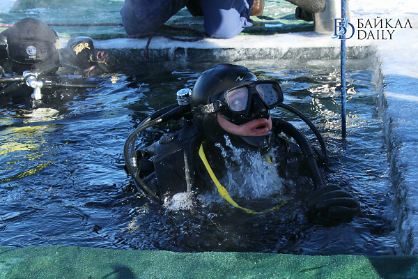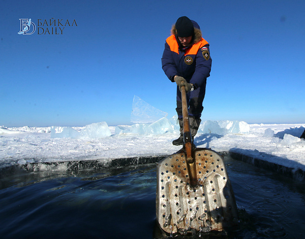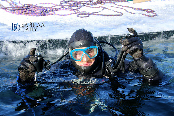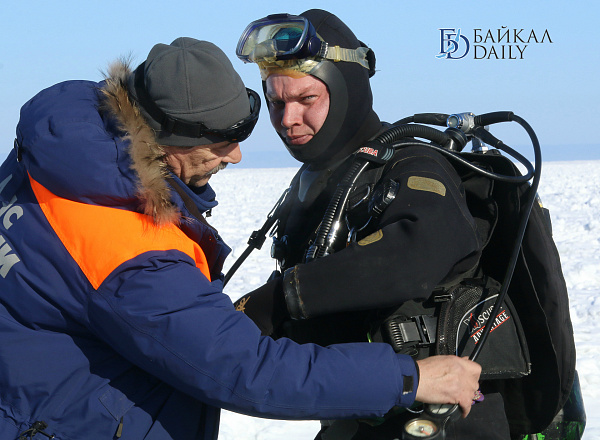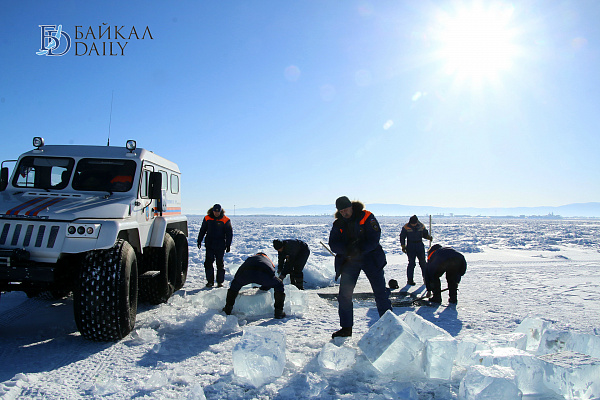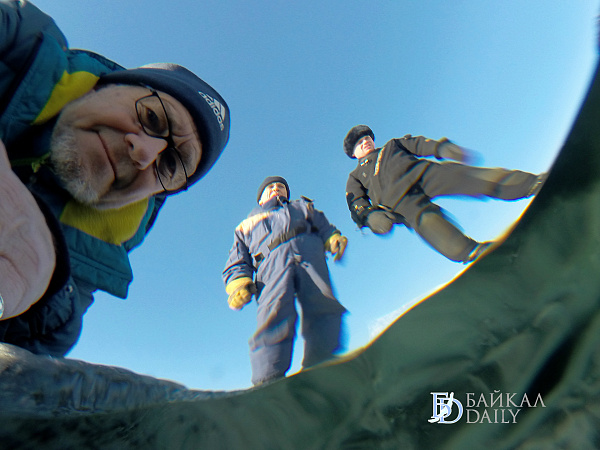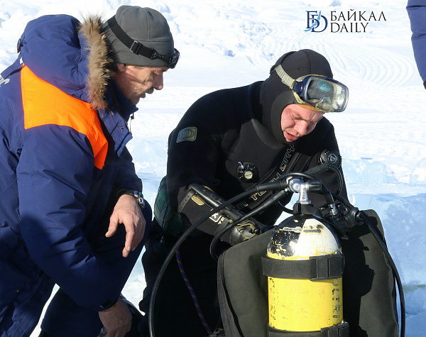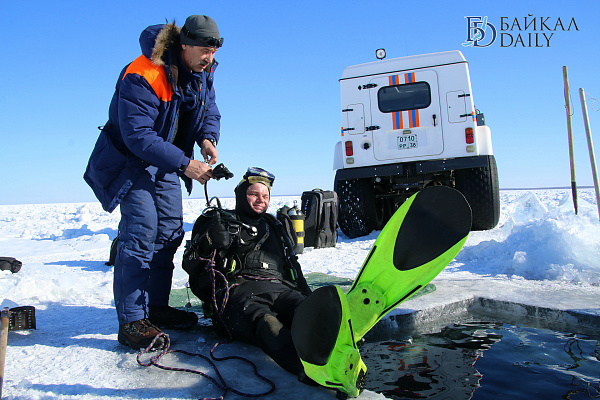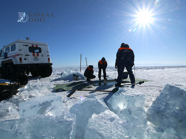 Спасатели отрабатывали водолазные спуски подо льдом Байкала. Водолазы оттачивают навыки подводных работ в условиях низких температур.