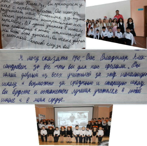 Владимир Тимофеев считает, что начальная школа – это фундамент всего образовательного процесса. К своей работе относится со всей ответственностью. Сейчас у него два класса – 1 и 3. В общем, 74 человека. Ребята платят ему той же монетой – любят. Об этом говорит, к примеру, такой факт. Пятый класс, в прошлом году окончивший начальную школу, пришёл на следующий день после его победы в конкурсе в полном составе - поздравлять первого учителя.