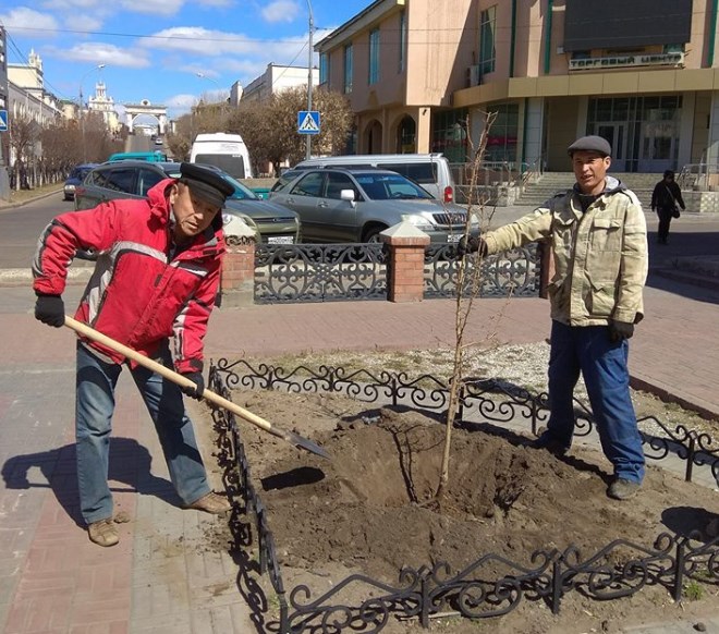 23 апреля на пешеходной улице Ленина в Улан-Удэ высадили саженцы груши, сибирской яблони и ильма. Их посадили работники Иволгинского плодово-ягодного питомника.