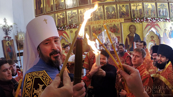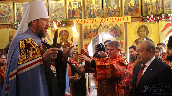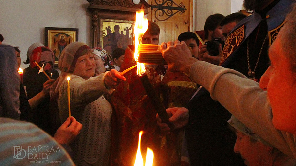 В аэропорту Благодатный огонь встретили управляющий директор Улан-Удэнского авиазавода Леонид Белых и представители Улан-Удэнской и Бурятской епархии. Затем святыню привезли в Свято-Троицкий храм. Здесь собралось больше сотни верующих. Митрополит Савватий отслужил праздничную литургию, после чего раздал огонь верующим.
