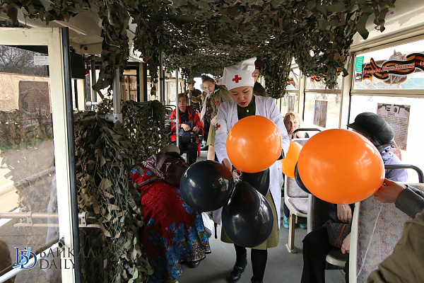В празднично украшенном вагоне пассажиры смогли послушать и спеть любимые песни военных лет вместе с певцами Тимуром Болотовым, Сергеем Затворницким. Ведущие акции провели исторический экскурс-викторину.