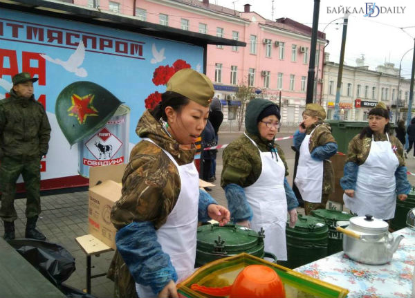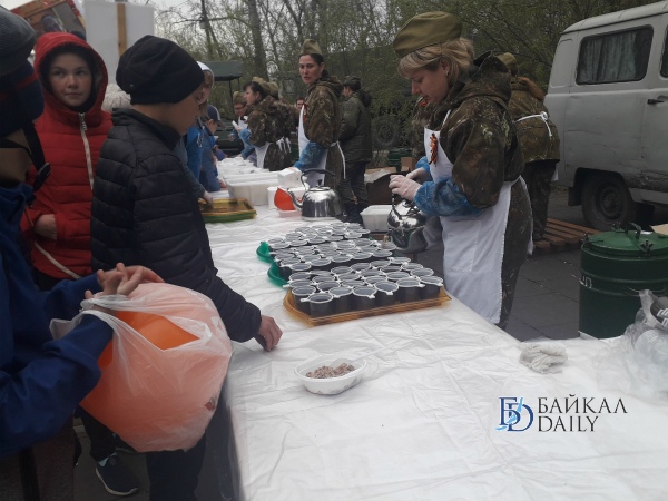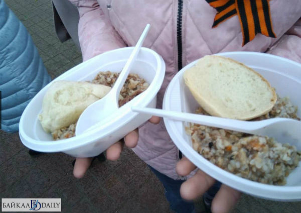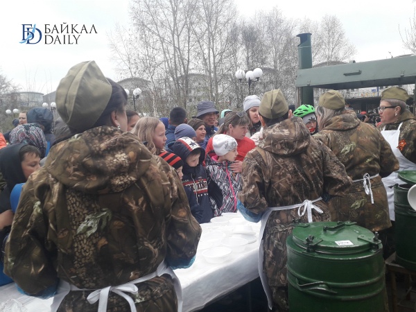 - Всего приготовлена тысяча порций. Организовано несколько точек по городу. Люди очень охотно едят. Мы вчера на Мемориале Победы тоже раздавали кашу, очень быстро съели с удовольствием. Даже добавки просили. Действительно, очень вкусная каша, хотя казалось бы обычная: гречка, тушёнка, морковь и лук обжаренные, - рассказали «Байкал-Daily» организаторы акции «Солдатская каша».