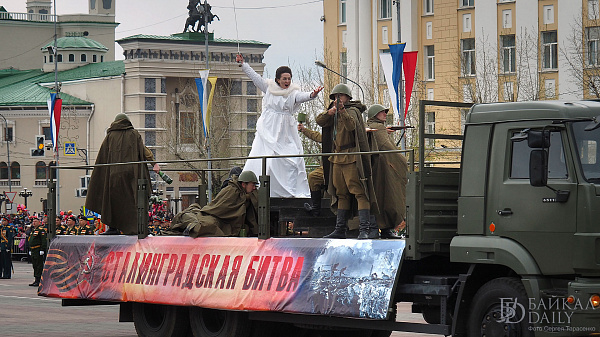 Также на параде были представлены исторические инсталляции – театрализованные экспозиции на 10 КамАЗах. Зрители увидят платформы «22 июня 1941 год», «Партизанское движение», «Всё для фронта, всё для победы!», «Блокадный Ленинград», «321-я сибирская стрелковая дивизионная», «Сталинградская битва», «Курская дуга», «Победа» и другие.
