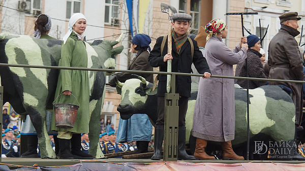 На главной трибуне города почётные места заняли ветераны и труженики тыла. Перед военнослужащими и зрителями с поздравительной речью выступил командующий общевойсковым объединением генерал-майор Михаил Носулев. В своём выступлении генерал-майор напомнил всем о стойкости, героизме, воинской доблести и готовности к самопожертвованию воинов Великой Отечественной войны и тружеников тыла.