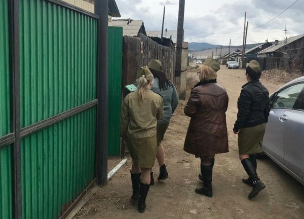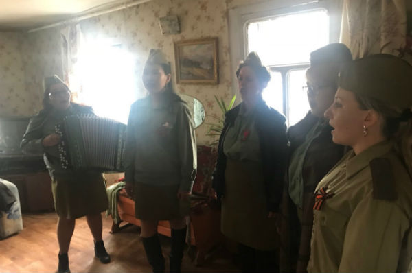 Участники хора дома культуры села Эрхирик Заиграевского района Бурятии и неравнодушные активисты ТОС поздравили ветеранов и тружеников тыла с Днём Победы. Певцы приходили в гости к пожилым людям и исполняли им песни военных лет: «Катюша» и «В землянке».