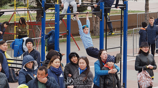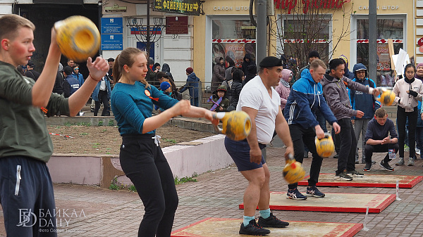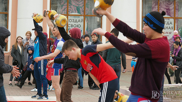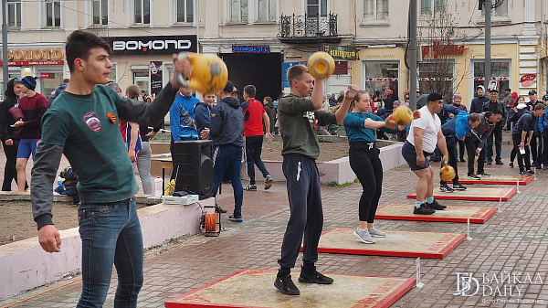Девушки и дети поднимали 16-килограммовую гирю на «Рекорде Победы» в Улан-Удэ