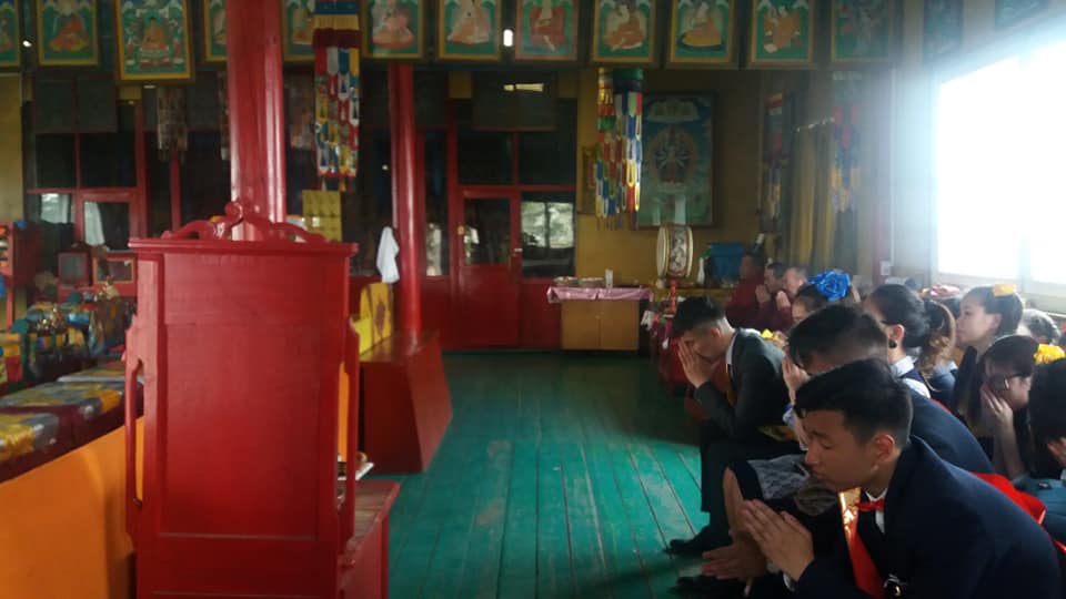В день «Последнего звонка» выпускники 11-х классов Иволгинской средней школы приехали в дацан. Специально для выпускников ламы прочитали молебен в Сахюусан дугане. Это стало доброй традицией, отмечают в дацане.