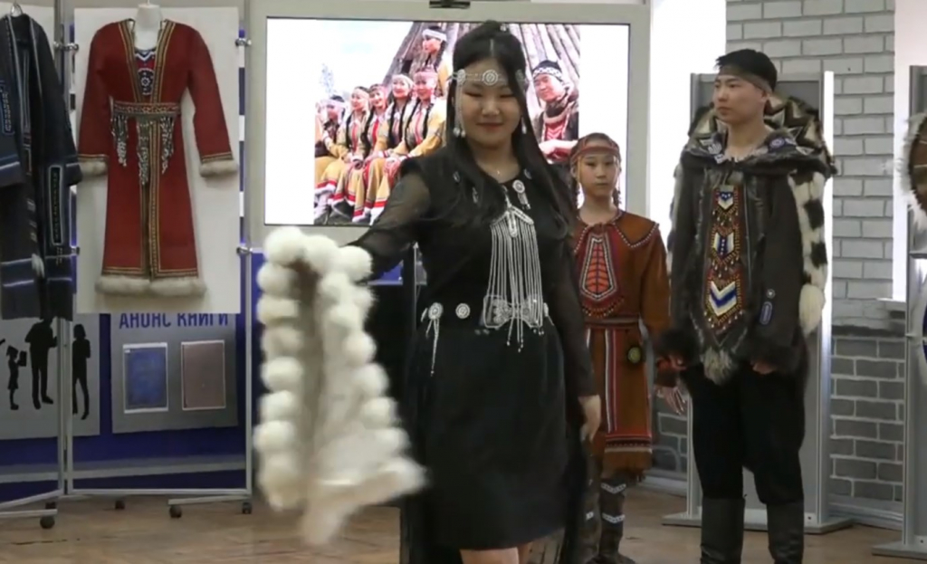 Перед зрителями экспонировали образцы эвенкийского декоративно-прикладного искусства: национальные костюмы, меховые коврики-кумаланы. Также выставлялись образцы книг об эвенках, изданных центром «Арун».