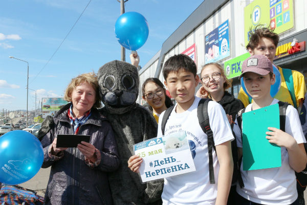 Ребята из клуба друзей «Заповедного Подлеморья», воспитанники школы «Экос» Городского дворца детского (юношеского) творчества (ГДДЮТ) Улан-Удэ вышли на улицы города вместе с «нерпой» - участником акции в ростовой кукле - рассказать жителям о празднике и провести викторину.