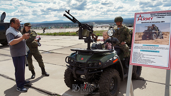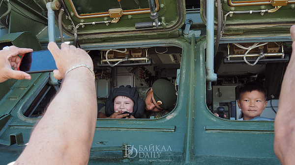 Военные представили более 30 единиц современных образцов вооружения и военной техники. Выставка под открытым небом демонстрировала боевую мощь воинских частей Восточного военного округа, находящихся в Бурятии. К примеру, это гордость армии – оперативно-тактический ракетный комплекс «Искандер». Также зрители, многие из них впервые, увидели вживую зенитные ракетные комплексы «Тор-М2У», «Бук-М2» бронеавтомобиль «Тигр», тяжёлую огнемётную систему «Буратино», станци. обнаружения и целеуказания «Купол», многофункциональный комплекс беспилотной авиации «Орлан-10», самоходную гаубицу «Мста-С», станцию радиопомех «Ртуть-БМ» и др. Все желающие смогли потрогать танк Т-72Б и боевую машину пехоты БМП-2. Дети с удовольствием сидели в армейском мотовездеходе.