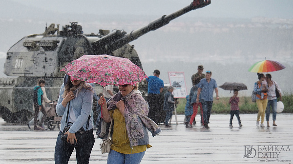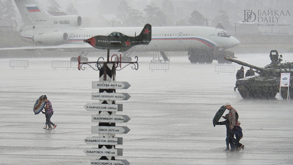 А вот от части запланированных мероприятий, к сожалению, пришлось отказаться. В планы организаторов вмешался ливень, обрушившийся на аэродром после обеда. Из-за этого не состоялось такого зрелища, как показ десантирования десантно-штурмовых групп с парашютами. Из-за непогоды не увидели зрители и обещанного пролёта техники Улан-Удэнского авиационного завода.