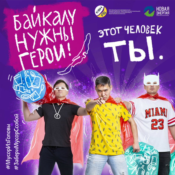 Для донесения своей идеи этим летом сборная республики, команда КВН «Берег Байкала» запускают запоминающиеся баннеры «Байкалу нужны герои. Этот герой – Ты», в которых юмористы подражают героям из экранизаций комиксов. Картинки уже опубликованы в соцсетях и пользуются популярностью у аудитории.