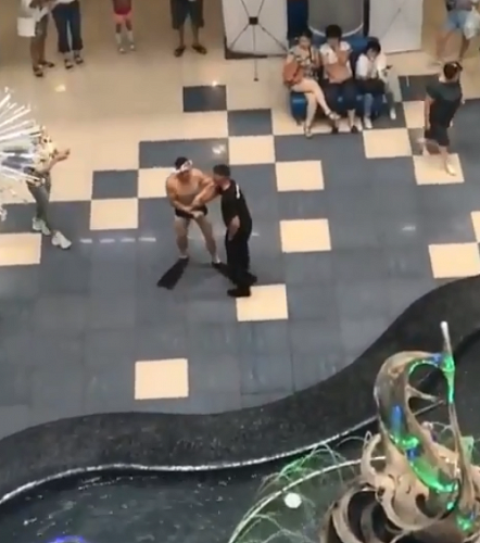 Мужчину во время инцидента вытащил из фонтана охранник, и он был вынужден выйти из торгового центра.
