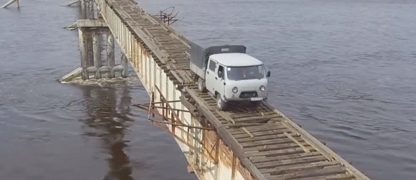 Житель Бурятии запечатлел проезд по одному из самых опасных мостов в России. Таким называется мост через реку Витим на границе Бурятии и Забайкальского края, ведёт он в посёлок Куанда.