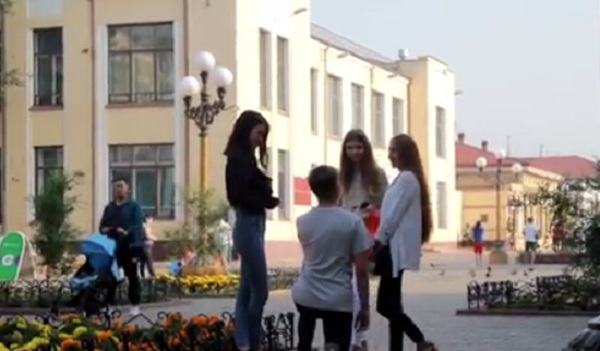 Реакция девушек была неоднозначной. Поначалу они смущались, но в итоге брали угощение. Стоит отметить реакцию прохожих, которые с любопытством оглядывались на парня, стоящего на колене.