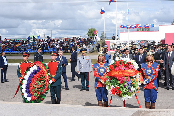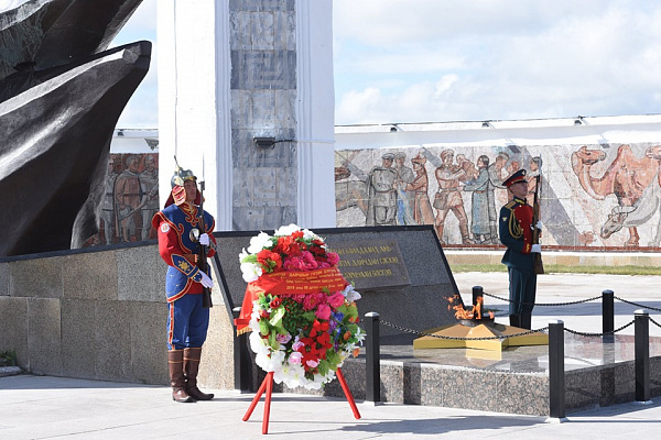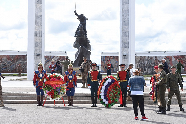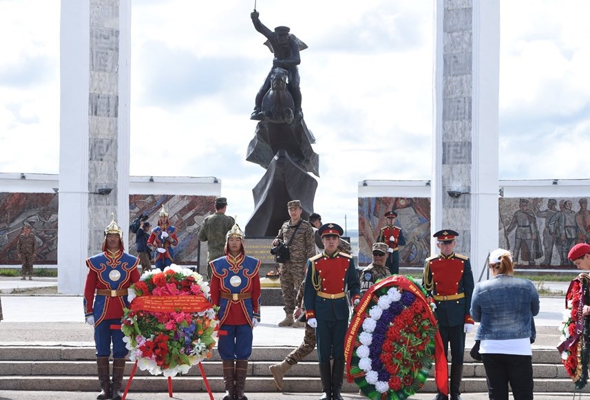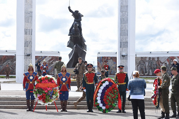 Также в Чойбалсане состоялась торжественная церемония возложения венков к памятнику советским лётчикам, мемориалу монгольским воинам на центральной площади города.