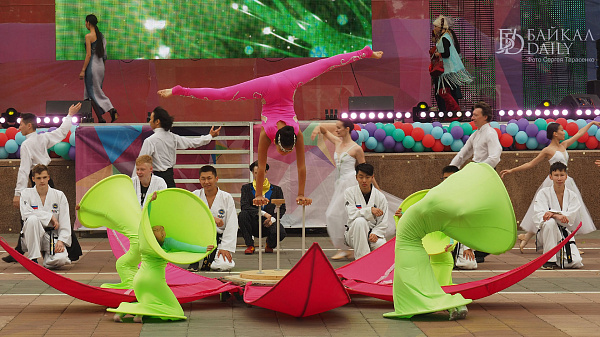 Праздничное шоу для гостей и жителей столицы Бурятии представили учащиеся детских школ искусств, ведущие солисты, творческие коллективы, цирковые артисты и танцоры с Африки. Театрализованному представлению дали название «Яркими красками город цвети».