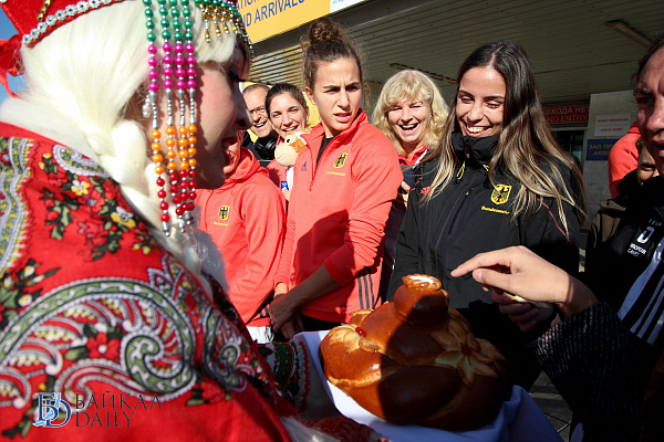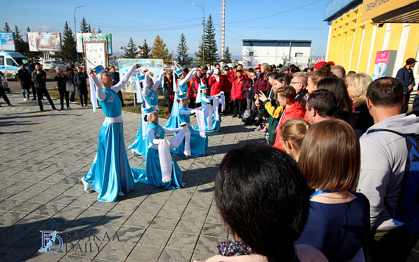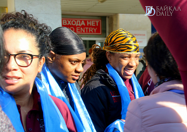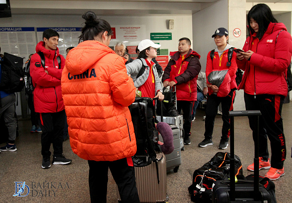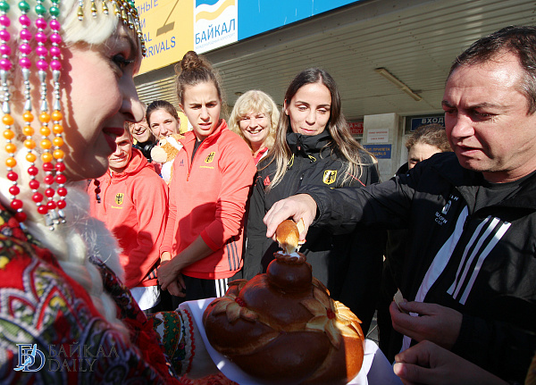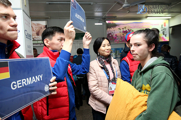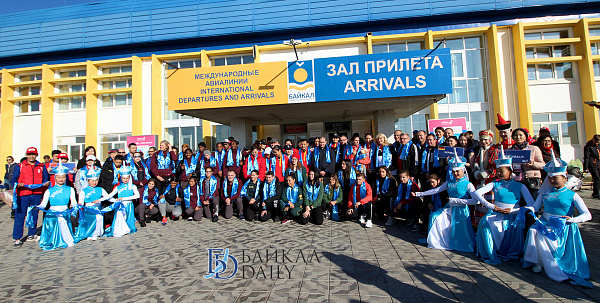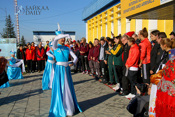 По традиции встреча в аэропорту была торжественной. Спортсменов и их тренеров приветствовали девушки в национальных бурятских и русских костюмах. Перед выходом из аэропорта устроили небольшое театрализованное представление. Гостей угостили хлебом-солью, а также вручили голубые хадаки.