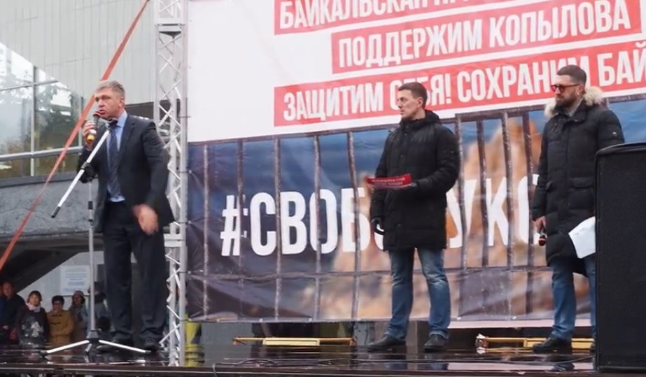Люди вышли на площадь возле дворца спорта с транспарантом, на котором было написано «Это наш мэр! Это наша земля! Свободу Копылову!», а также с плакатами «Сохраним Байкал вместе с местным населением», «Кто следующий «Копылов» и другими, уточняет портал Ирсити.ру.