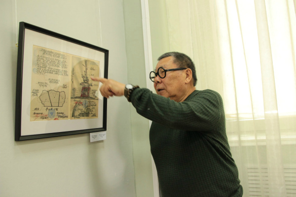 – Тогда директором театра был Доржи Сультимов. Вот эскиз данного произведения. Изображены тотемы бурятских народов: налим, бык, белая лебедь и т. д. Но проект не воплотился в жизнь, – отметил он.