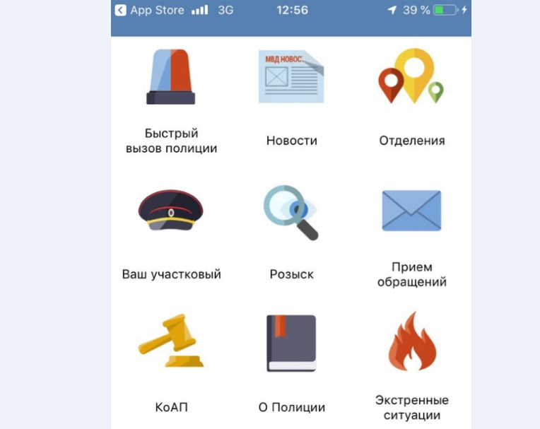 С помощью мобильного приложения можно также совершить экстренный вызов полиции, просмотреть кодекс РФ, получить информацию об отделах полиции и опорных пунктах.