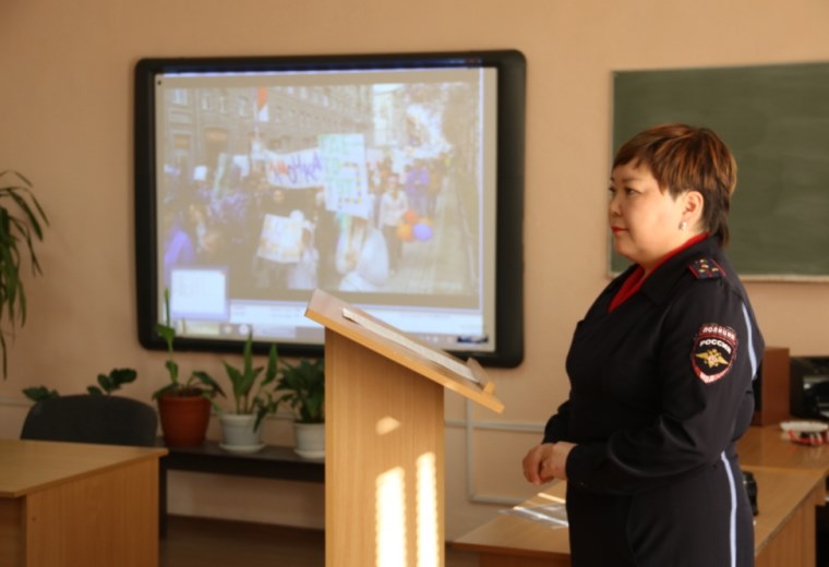 Одно из первых мероприятий в рамках акции прошло по инициативе члена Общественного совета при МВД Бурятии Ольги Захаровой в Байкальском колледже туризма и сервиса.