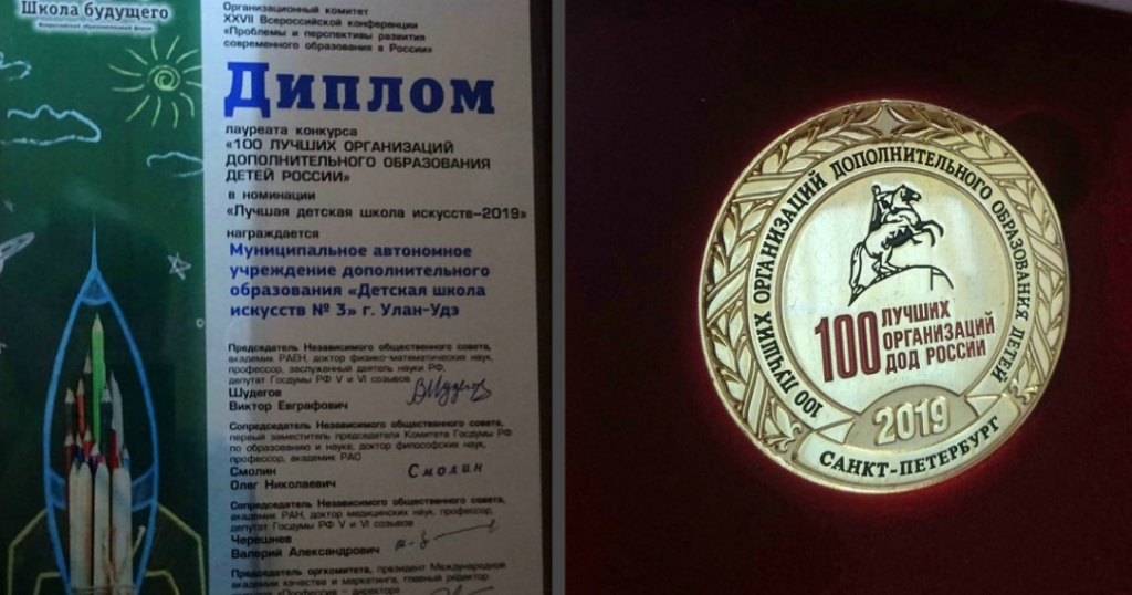Детская школа искусств № 3 Улан-Удэ признана лауреатом конкурса «100 лучших организаций дополнительного образования детей России» 2019 года в номинации «Лучшая детская школа искусств».