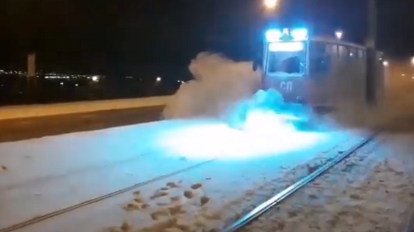 Каждую ночь расчищают от снега все 56 км трамвайных путей. В результате ночной работы спецтехники ночной, утром трамваи выезжают из депо по расписанию в обычном режиме.