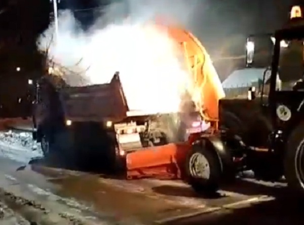 С четырёх утра на подсыпке работает 15 пескоразбрасывательных машин. С шести утра вышли ещё 18 самосвалов и четыре бобкэта для ручной и механизированной погрузки и вывоза снега.