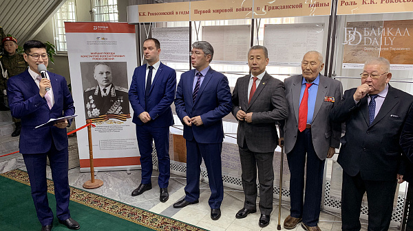 После открытия памятника действие перенеслось в музей истории Бурятии, где в центральной части экспозиции «Хронограф Бурятии» на втором этаже открылась выставка «Герой Отечества», посвящённая Рокоссовскому. На шести информационных стендах посетители ознакомились с военной карьерой Рокоссовского, а также с документами, фотографиями, оружием, военной формой (будёновкой, шинелью), монгольским дэгэлом, подаренным Рокоссовскому семьей Цеденбала во время его визита в МНР в 1960-е годы.