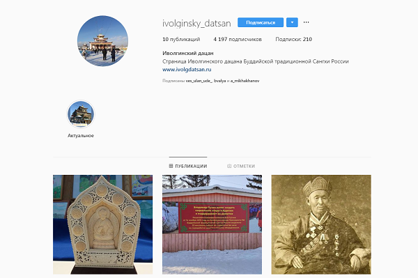 У Иволгинского дацана Бурятии недавно появился аккаунт в Instagram. Страницу завела пресс-секретарь дацана Алла Намсараева.