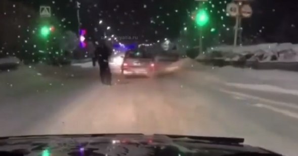 В соцсети появилось видео довольно экстремального катания на лыжах по Северобайкальску. Лыжник, прицепленный к легковому автомобилю, лихо рассекает по улицам города.