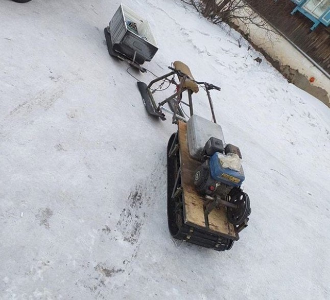В паблике «Бурятия Онлайн» в Instagram появилась фотография необычных санок, с которыми отец приезжает в садик за детьми. Санки явно сооружены своими руками. Снегокат и специальная тележка для младшего ребёнка соединены между собой и движутся вслед за водительской «головной машиной» на гусеницах.
