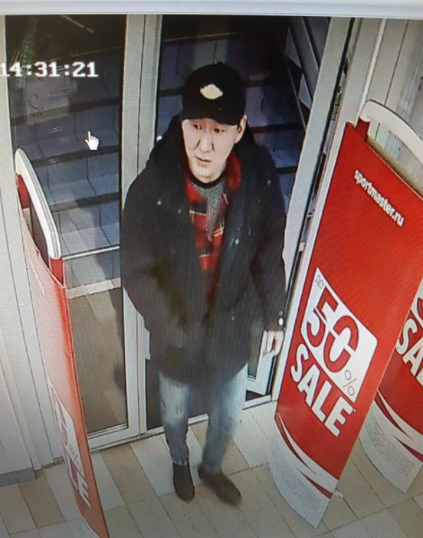 Подозреваемый мужчина азиатской внешности, на вид 30-35 лет, рост 175-180 см, среднего телосложения. Он был одет в чёрную куртку, светло-синие джинсы, ботинки коричневого цвета и чёрную кепку с белым рисунком.