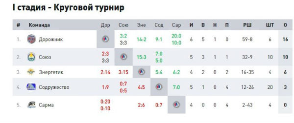 По промежуточным итогам первого из четырех кругов турнира лидирует хоккейный клуб «Дорожник». С отрывом в 6 очков идёт хоккейный клуб «Союз», который стал победителем регионального этапа НХЛ в 2016 году.