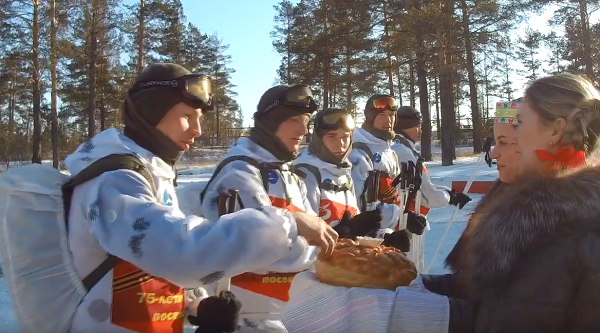 Сегодня стало известно, что в Бурятии участники перехода Хабаровск-Москва преодолели дистанцию в 35 километров за рекордное время - три часа. Марш был совершён на лыжах. Отдельные труднопроходимые участки военные преодолевали пешком.