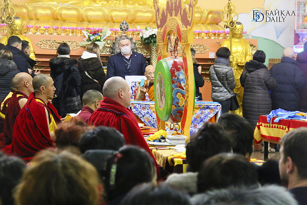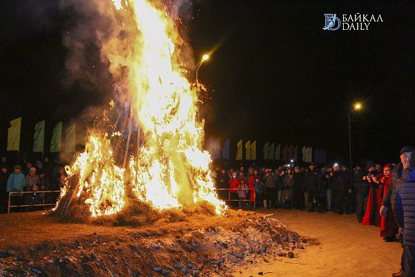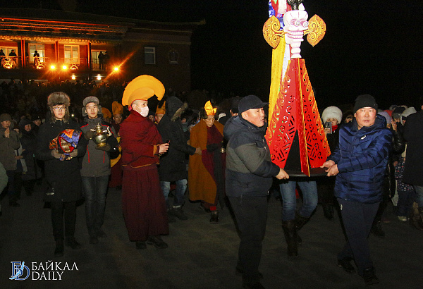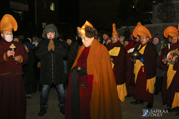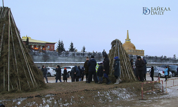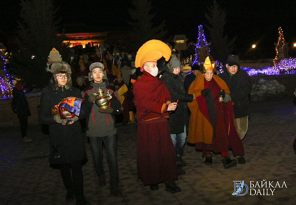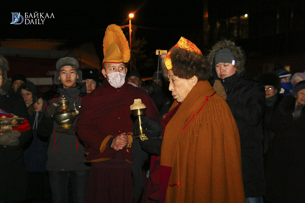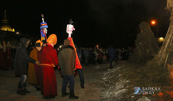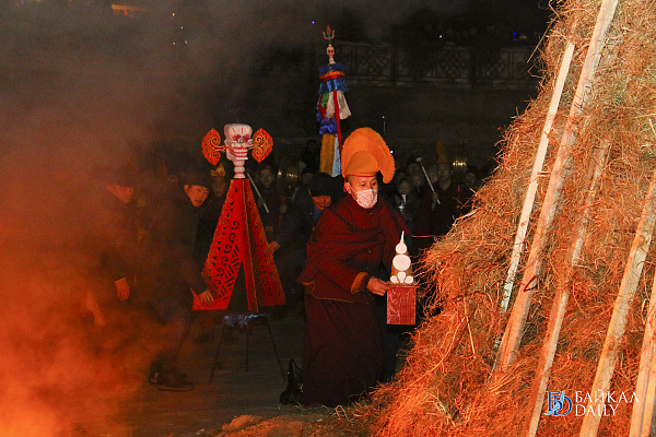 В 17:30 ламы начали читать специальный молебен Дугжууба, после чего был разведён ритуальный костёр.