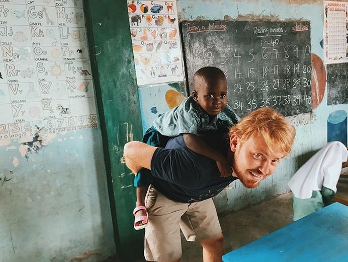 Виталий целый месяц проведёт в Африке – он участвует в проекте по поддержке бедных стран и будет работать с детьми в школе, преподавать английский, математику и изобразительное искусство.