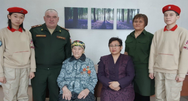 В Курумканском районе Бурятии состоялась встреча юнармейцев, представителей районного военного комиссариата с труженицей тыла, ветераном труда Ангабаевой Розой Сандибаевной.