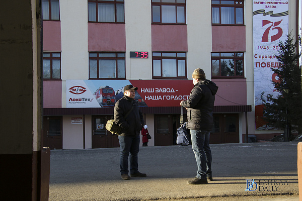 Сегодня утром некоторые сотрудники Улан-Удэнского ЛВРЗ пришли как обычно на работу. Но у входа администрация предприятия разворачивала их и отправляла домой. Возможно, кто-то вышел из отпуска и не знал об объявленной нерабочей неделе.