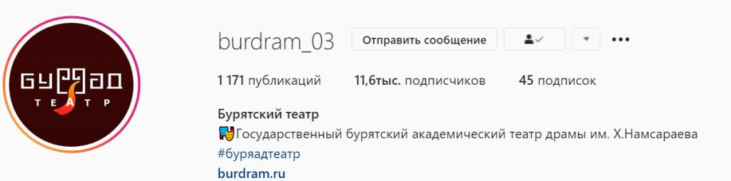 Государственный бурятский академический театр драмы запустил онлайн-проект в социальной сети Instagram. Ежедневно с 5 апреля со своими подписчиками общаются артисты легендарного театра. Об этом сообщает пресс-служба Бурдрама.